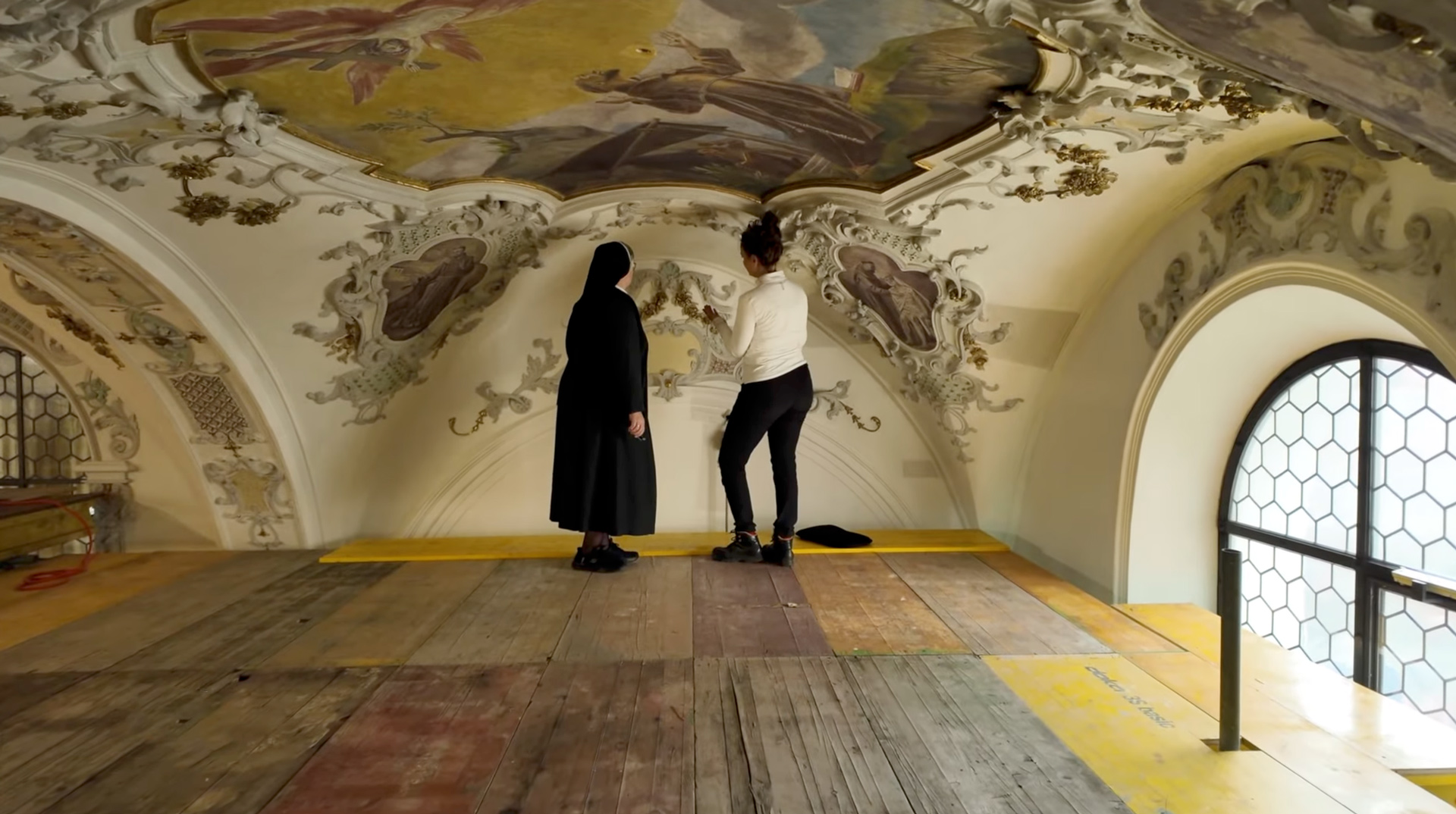 Seit September 2025 ist unsere Sternkirche wegen Renovierungsarbeiten geschlossen. Die Vorbereitungsaktionen und den Beginn zeigten wir in einem Videobericht. Nun schildert ein zweites Video den guten Verlauf der Arbeiten und gewährt einen Einblick in die Restauration der Heiligenfiguren und der Deckenfresken.